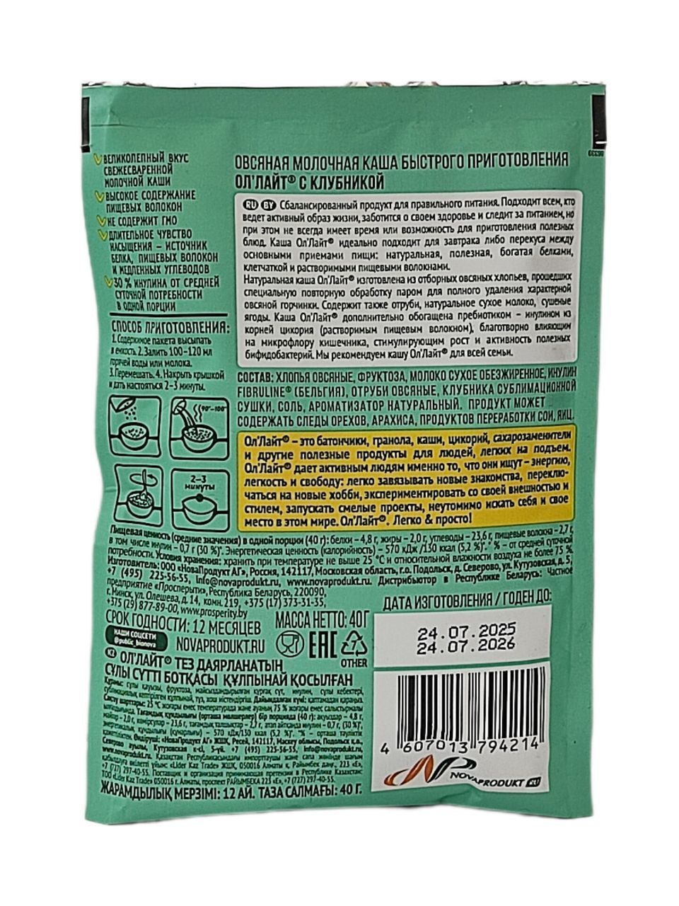 Ол'Лайт Каша Овсяная с Клубникой с Молоком 40 гр