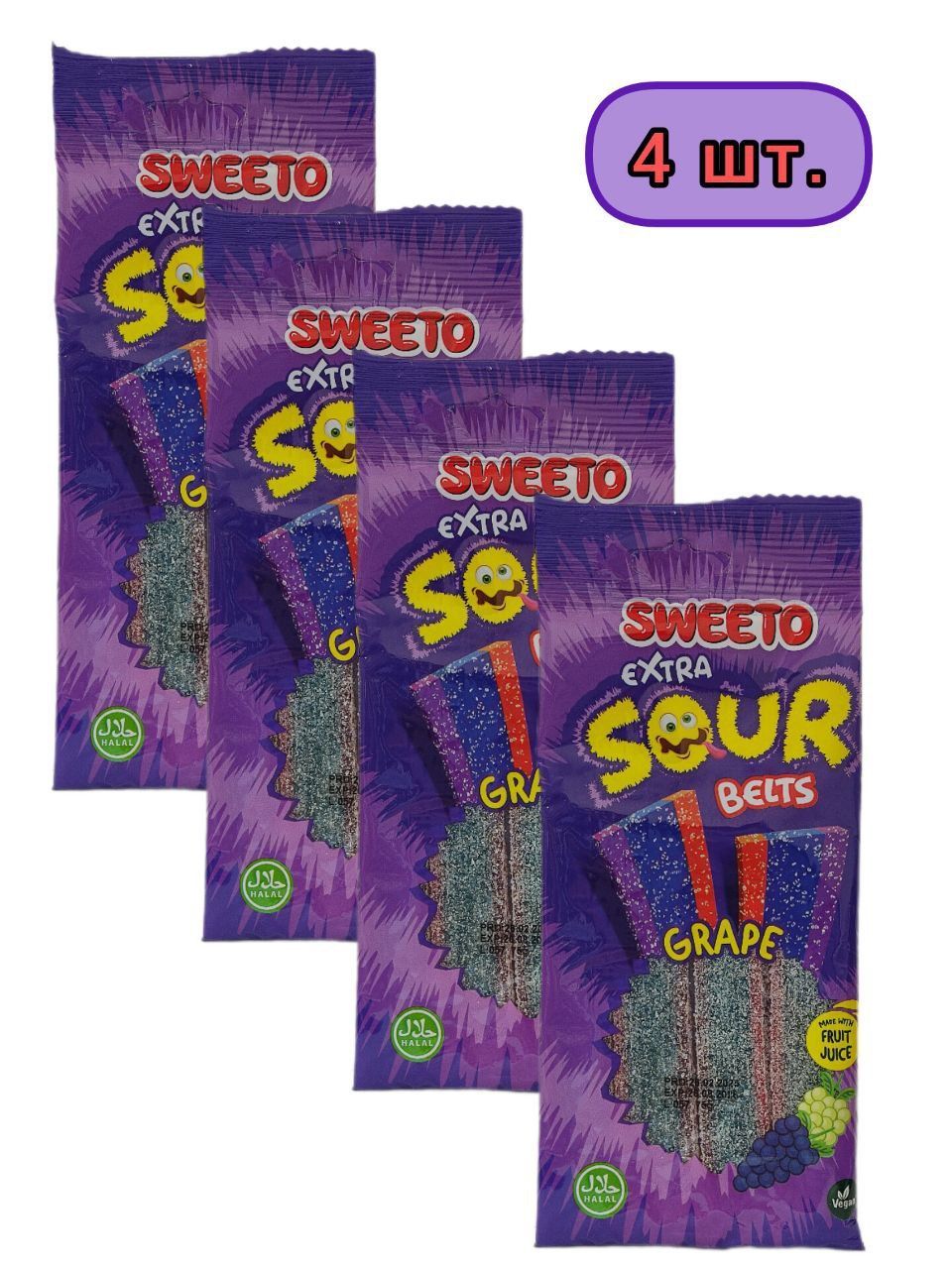 Жевательный мармелад SWEETO супер кислый ремешок виноград имеет упругую консистенцию, и яркий вкус. Мармелад жевательный благодаря своему выразительному вкусу и ярким цветам, очень нравится и детям, и взрослым. Это лакомство поднимет настроение и добавит красок в повседневную жизнь!