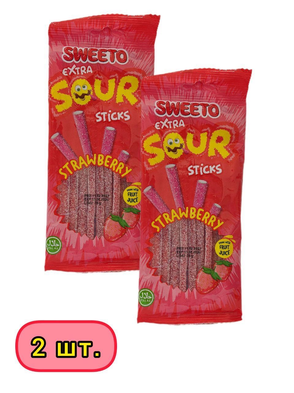 SWEETO Мармелад Жевательный Супер Кислые Палочки Клубника 75г