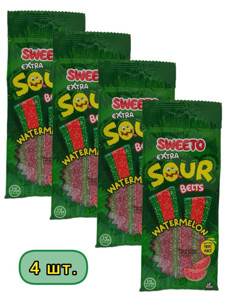 SWEETO Мармелад Жевательный Супер Кислый Ремешок Арбуз 75г