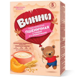 Винни/Каша детская молочная пшеничная с тыквой и с пребиотиками, с 5 мес., 200 г/Нутрилак/Nutrilak