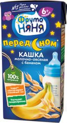 Кашка молочно-овсяная с бананом, готовая к употреблению, стерилизованная обогащенная пребиотиками, с фруктозой для питания детей раннего возраста.