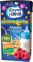Кашка молочно-рисовая с малиной, готовая к употреблению, стерилизованная, обогащенная пребиотиками, с фруктозой для питания детей раннего возраста.