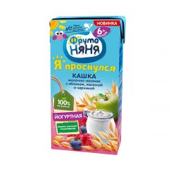 Кашка молочно-овсяная «йогуртная» с яблоком, малиной и черникой, готовая к употреблению, стерилизованная, обогащенная пребиотиками, с фруктозой