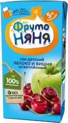 Сок из яблок и вишни осветленный для питания детей раннего возраста "Детскими соками и нектарами ""ФрутоНяня"" становятся натуральные, отборные фрукты, ягоды и овощи. Они обеспечивают вашего малыша природной пользой и энергией для гармоничного роста и развития. Бережная технология приготовления сохраняет природную пользу фруктов, ягод и овощей. Современное производство соответствует высоким стандартам безопасности и качества.