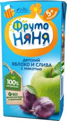 Нектар яблочно-сливовый с мякотью для питания детей раннего возраста "Детскими соками и нектарами ""ФрутоНяня"" становятся натуральные, отборные фрукты, ягоды и овощи. Они обеспечивают вашего малыша природной пользой и энергией для гармоничного роста и развития. Бережная технология приготовления сохраняет природную пользу фруктов, ягод и овощей. Современное производство соответствует высоким стандартам безопасности и качества.