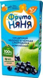 Сок из яблок и черной смородины осветленный для питания детей раннего возраста "Детскими соками и нектарами ""ФрутоНяня"" становятся натуральные, отборные фрукты, ягоды и овощи. Они обеспечивают вашего малыша природной пользой и энергией для гармоничного роста и развития. Бережная технология приготовления сохраняет природную пользу фруктов, ягод и овощей. Современное производство соответствует высоким стандартам безопасности и качества.