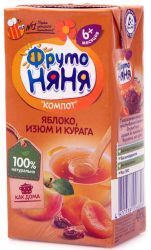 ФрутоНяня напиток сокосодержащий «компот» из яблок с экстрактом изюма и кураги неосветленный для питания детей раннего возраста.