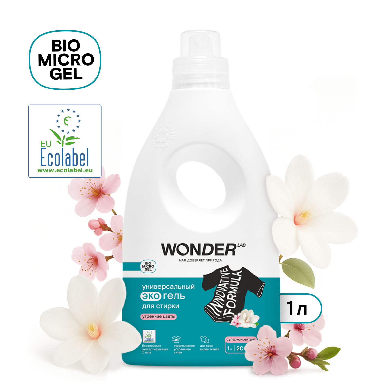 В основе средства — инновационный компонент Biomicrogel, который сделан из овощей и фруктов. Благодаря этому компоненту, средства WONDER LAB безопасны для человека, не вредят окружающей среде, не содержат токсичных компонентов и разлагаются на 98% за 1 день.