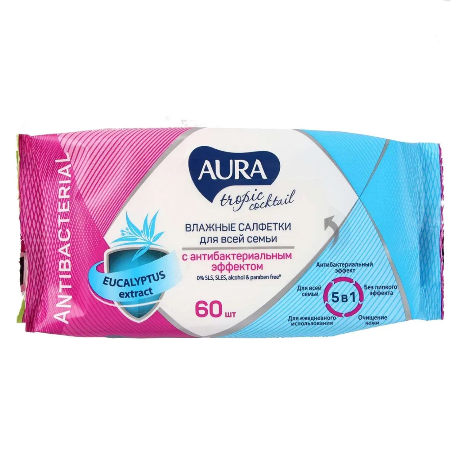 Салфетки влажные Aura Tropic Cocktail. Cалфетки нежно очистят кожу лица, рук и тела, оставляя после себя ощущение свежести и ухоженности в течение всего дня. Изделие изготовлено из мягкого материала с пропитывающим составом, который содержит натуральный компонент аллантоин, стимулирующий регенерацию кожи, делает её нежной и бархатистой. Салфетки подходят для взрослых и детей. Они находятся в удобной упаковке, которая легко поместится даже в небольшой сумочке.